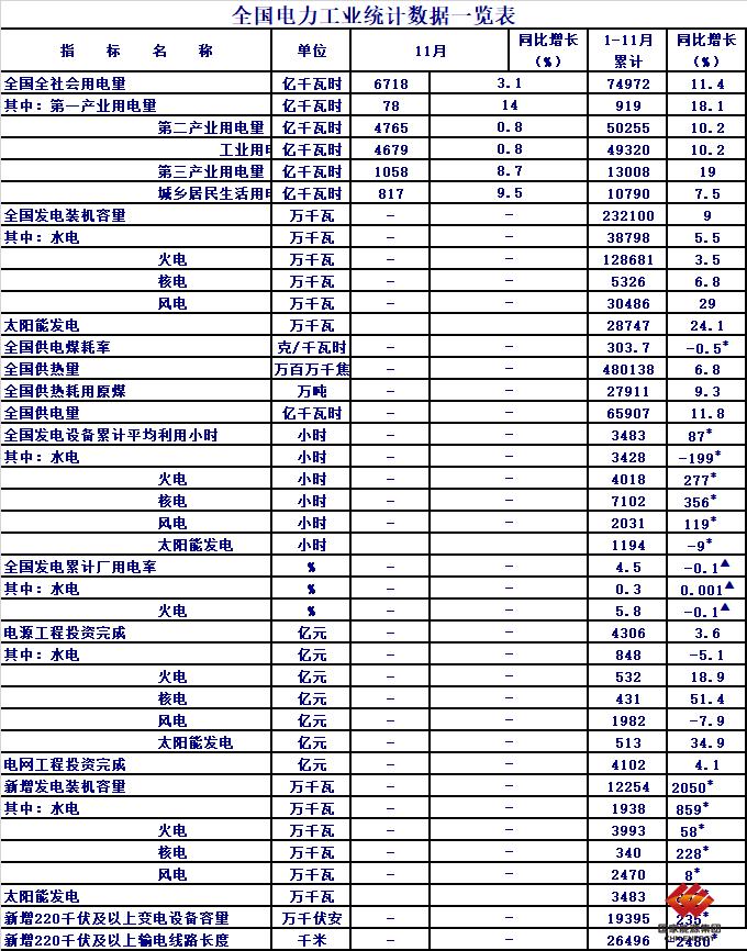 注:1.全社会用电量为全口径数据,全国供电量为调度口径数据。2.“同比增长”列中,标*的指标为绝对量;标▲的指标为百分点。